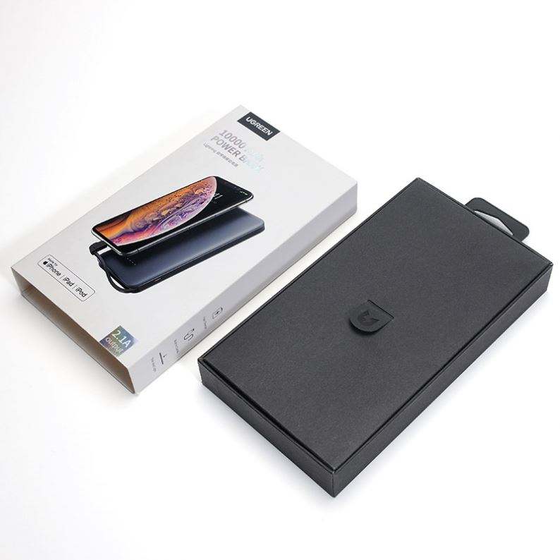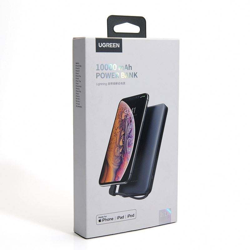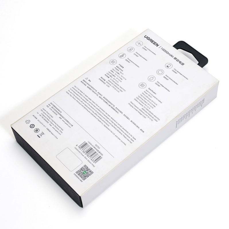 Ecológico al por mayor impresión personalizada Power Bank producto embalaje regalo cajas de papel de cartón con PET insertar caja colgante