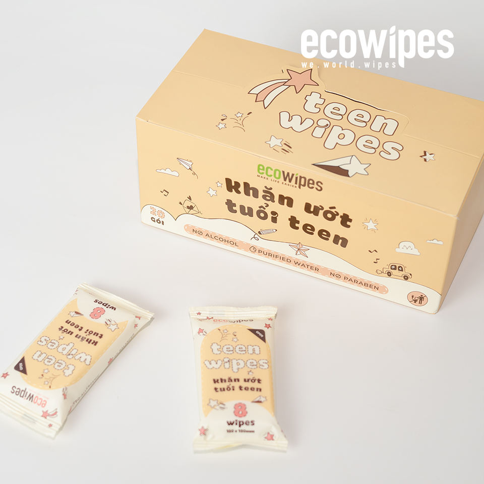 MINI TOALLITAS HÚMEDAS ECO TEEN, no tejidas, sin fragancia, para manos, cara, boca, 150x150mm, de VIETNAM