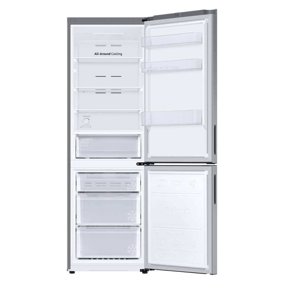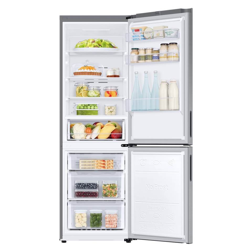 Refrigerador con Congelador Superior ECOFLEX RB33B610ESA Clase E, Metal Grafito, Total No Frost, Dimensiones 59.5x65.8x185.3cm