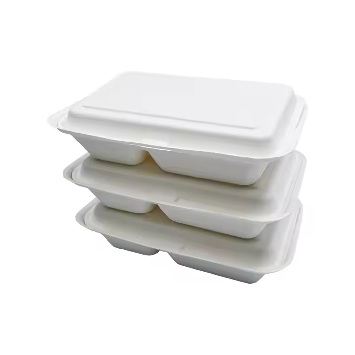 Cubiertos desechables biodegradables ECOLIFE, fiambrera de 9*6 pulgadas con 2 compartimentos, contenedor de comida de caña de azúcar de vajilla