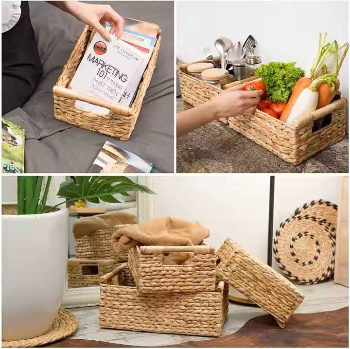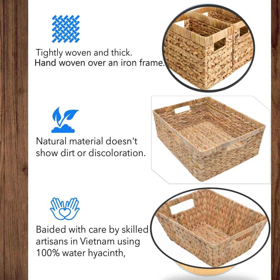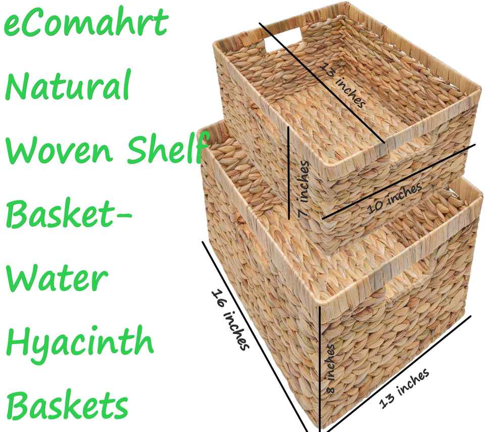 Cestas de Almacenamiento Hechas a Mano ECOMAHRT de Jacinto de Agua, Contenedores de Mimbre Natural Tejido, Organizador Ecológico para Despensas y Armarios