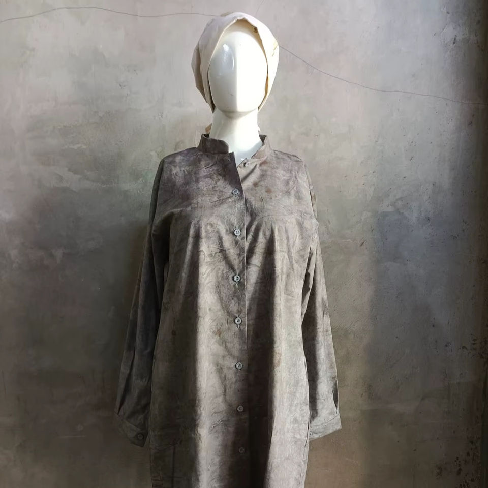Vestido Casual Otoñal Tradicional Indonesio para Mujer, Tejido Popelín Crochet, 100% Algodón, Corte Ajustado, Logotipo Frontal, Marca ECOPRINT
