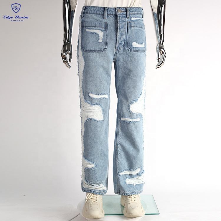 EDGE DENIM Custom Distressed Blue Washed Branded Rock Star Jeans Rock and Roll Rock Jeans Pantalones para hombres
