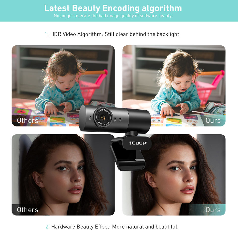 EDUP-cámara web para ordenador, webcam con usb, 1080P, 15fps, 1080p, 2k, 1080p