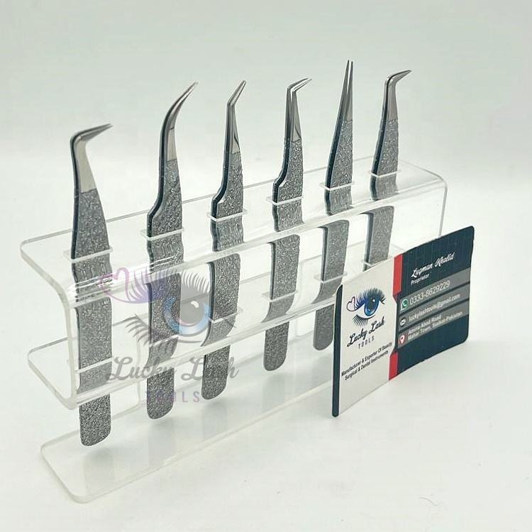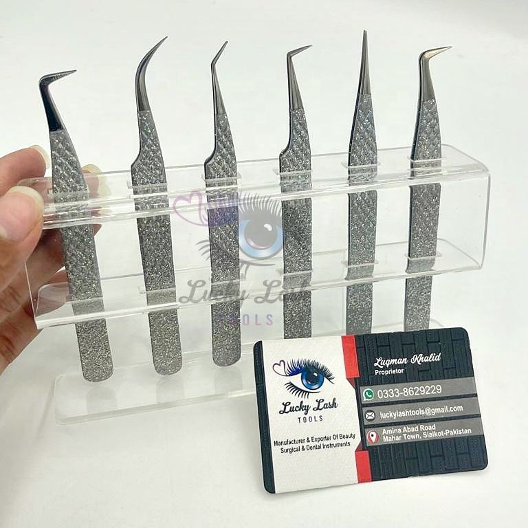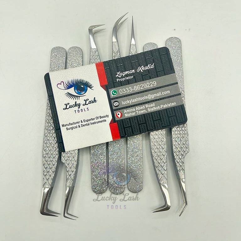 Pinzas para Extensión de Pestañas EET Personalizables con Etiqueta Privada, Plateadas, con Múltiples Purpurina, de Acero Inoxidable, Agarre Puro, Punta de Volumen Alta