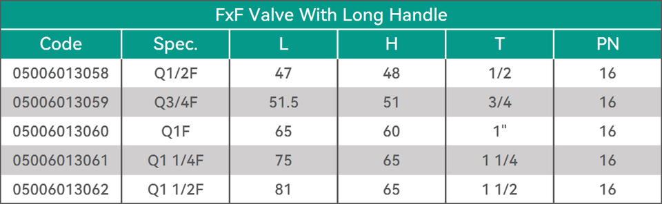 Válvula EFIELD OEM de 1 Pulgada BSP NPT FxF con Mango Largo para Sistemas de Agua, Aceite y Gas