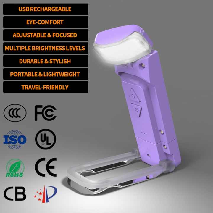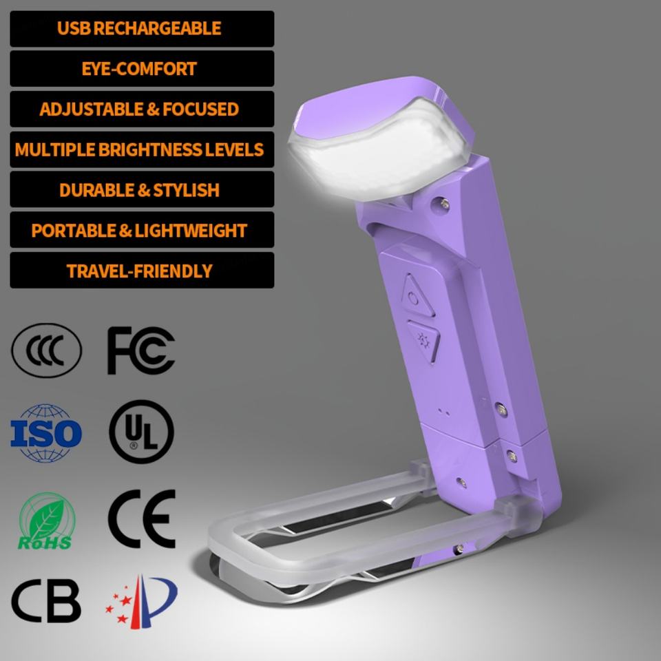 Luces de Lectura LED Púrpuras Recargables, Plegables, Ecológicas, Fáciles de Instalar, Resistentes al Agua, Duraderas, con Cambio de Color, Marca EGH