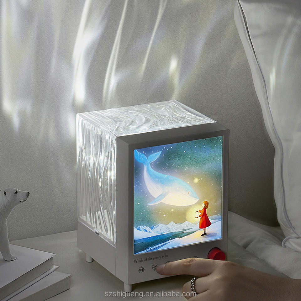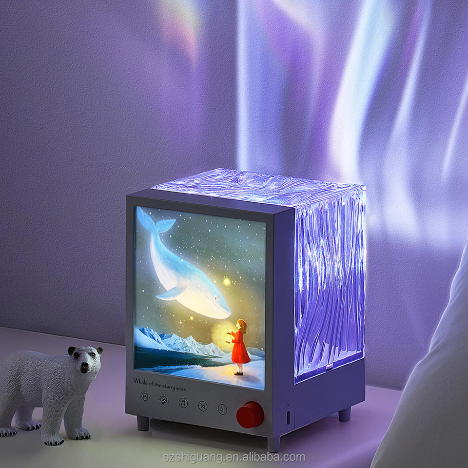 Lámpara de Caja Aurora Multicolor EGOGO, Pequeña Ballena Roja para Niños, Ola Dinámica del Océano, Ondulación del Agua, Luz Nocturna LED, Mini Cuadrada, Cálida
