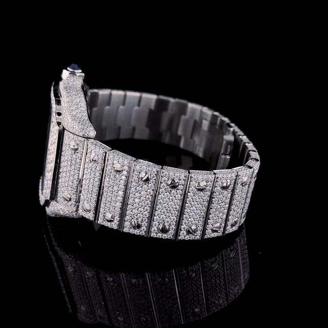 Reloj de Lujo EICY JEWELS Personalizado, Estilo Romano Cuadrado, Chapado en Oro Rosa, con Diamante Moissanita, Mecanismo ETA, Fecha Automática