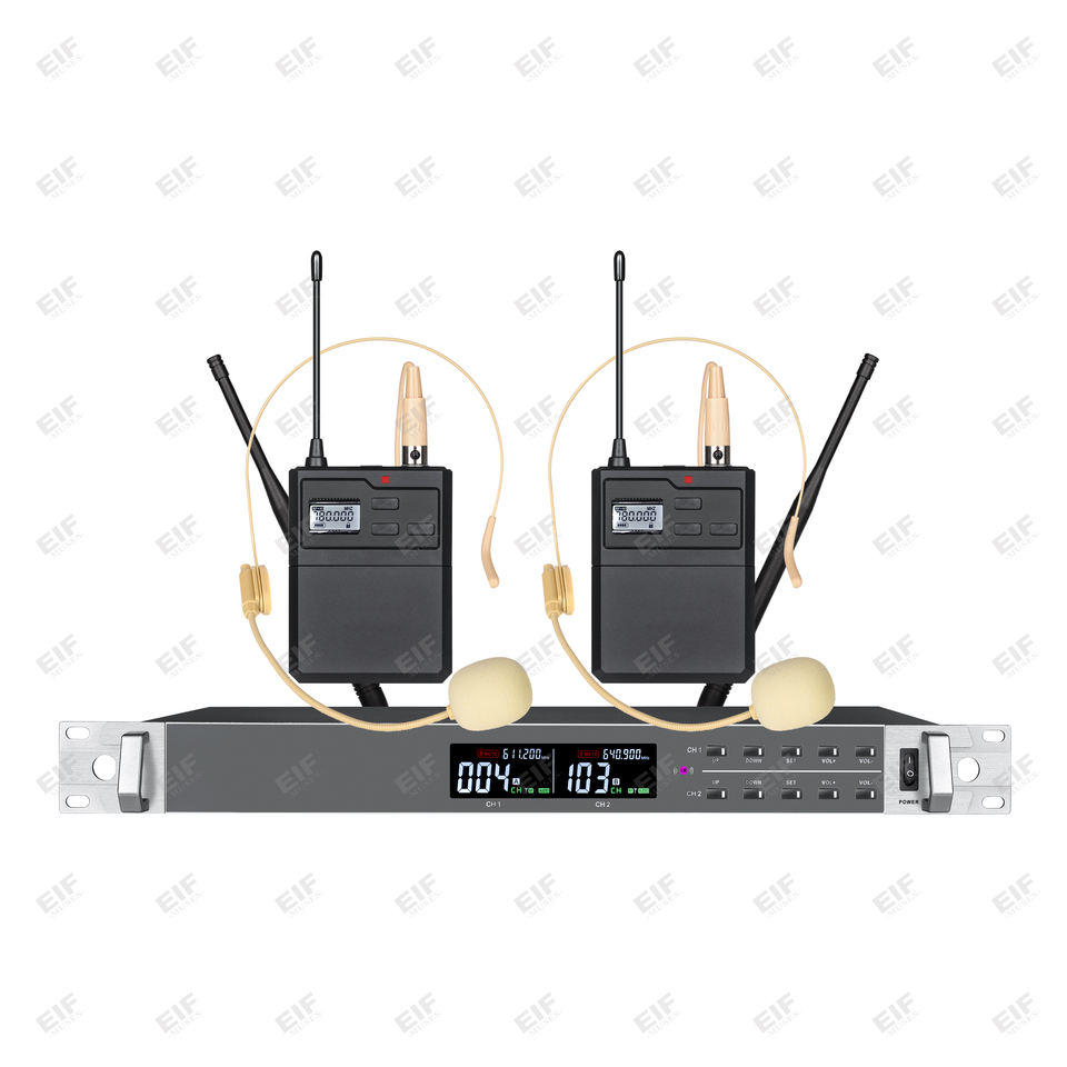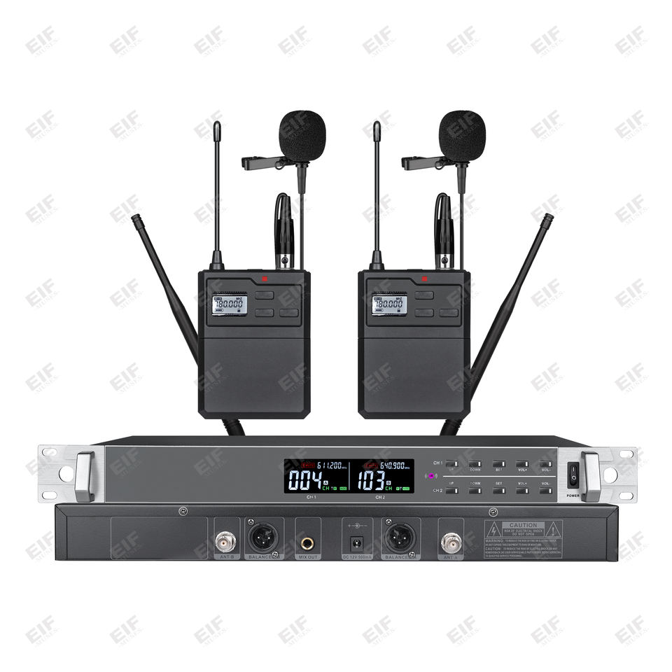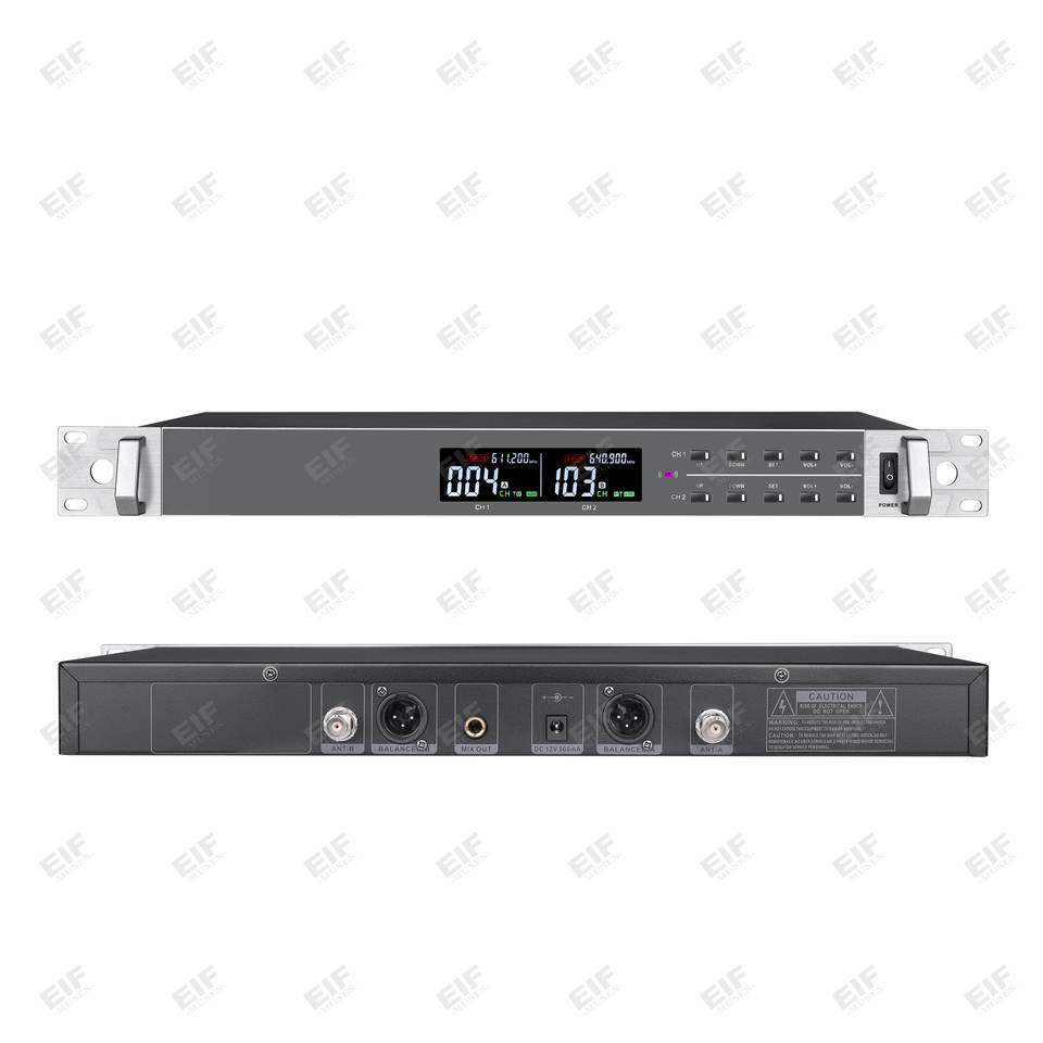 Micrófono Inalámbrico XLR de Doble Canal de Alta Fidelidad EIF HD-2000 con Cancelación de Ruido y Construcción Metálica