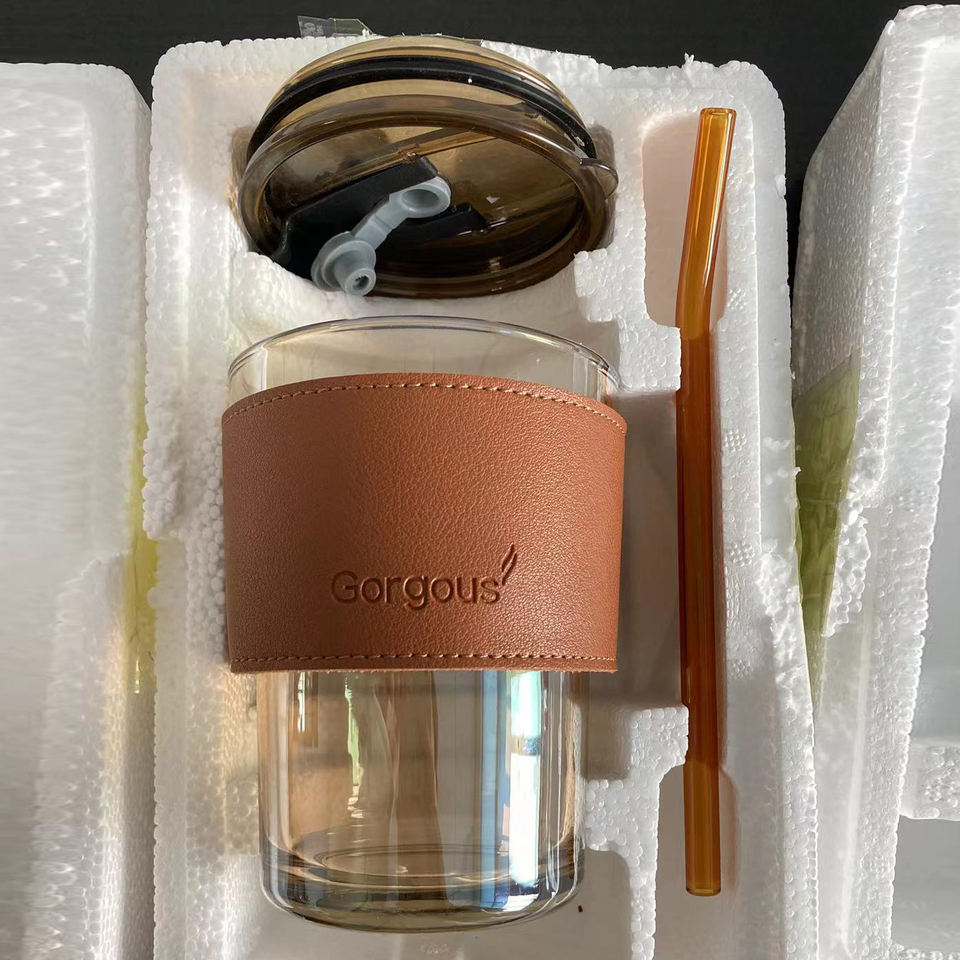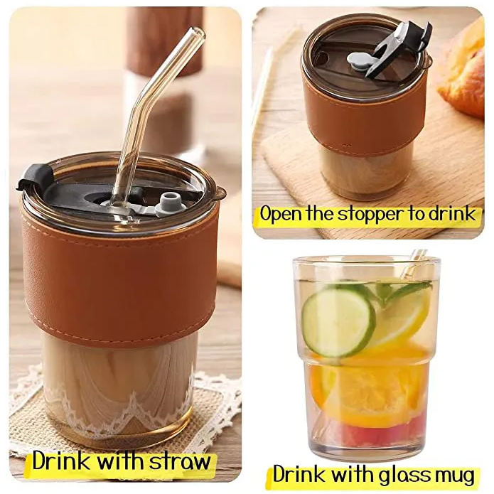 Nombre del producto:Bebiendo café leche vaso de vidrio tazas logo con paja