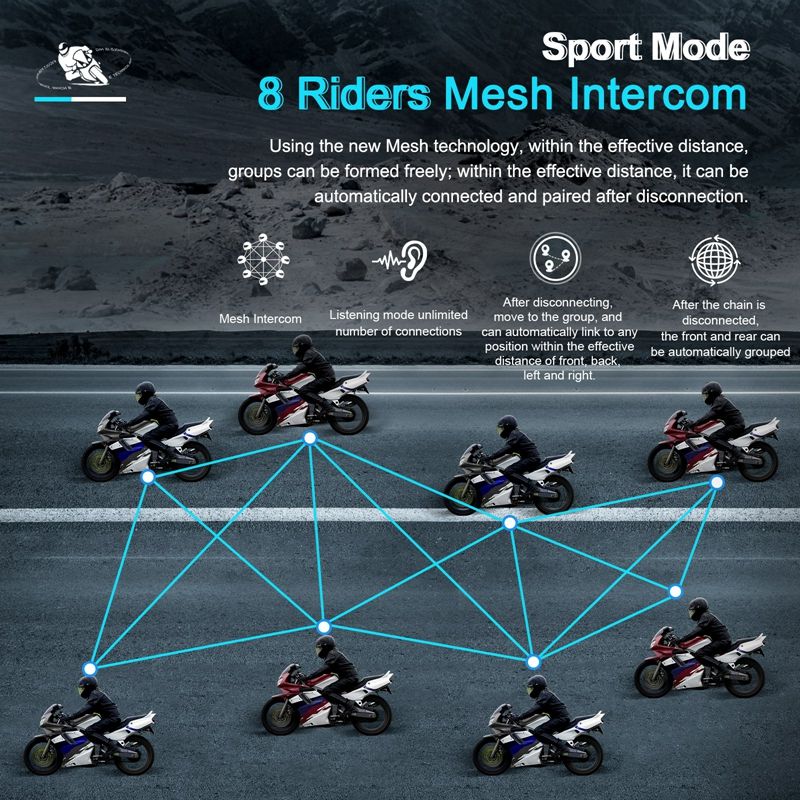 EJEAS MS8 8 Riders Bluetooth Mesh Casco de motocicleta Intercomunicador ABS Impermeable Accesorios de motocicleta para Moto