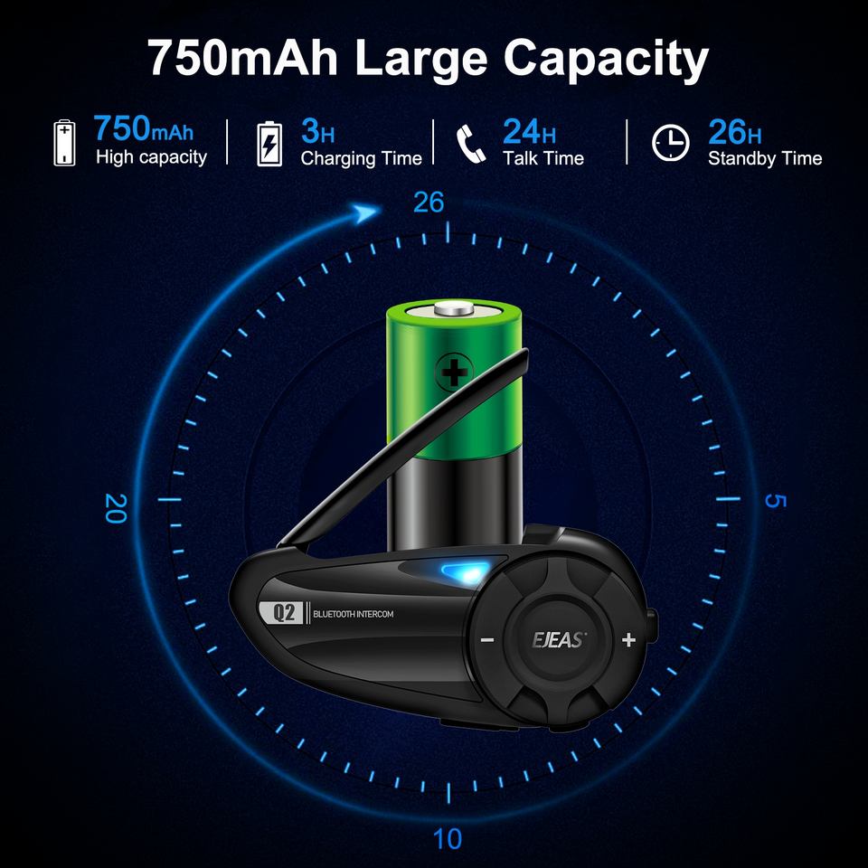 EJEAS Q2 2 jinetes al aire libre 750m Bluetooth casco de motocicleta intercomunicador con radio FM