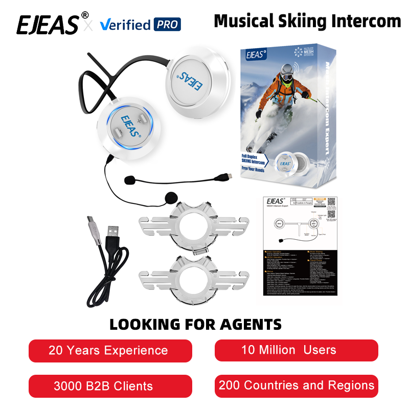 Auriculares Bluetooth EJEAS S2 Impermeables para Esquí, Resistentes, con Gran Compatibilidad, para Clima Frío, Intercomunicador Duradero para Casco de Esquí