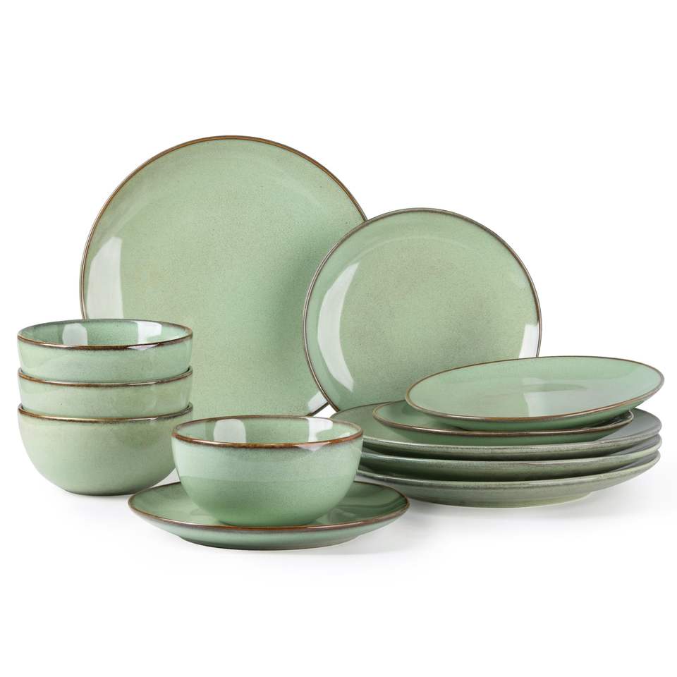 Vajilla de Cerámica Fina Europea EKA Factory, Juego de 12, 16, 18 Piezas, Plato de Gres con Esmalte Reactivo, Vajilla, Juegos de Vajilla