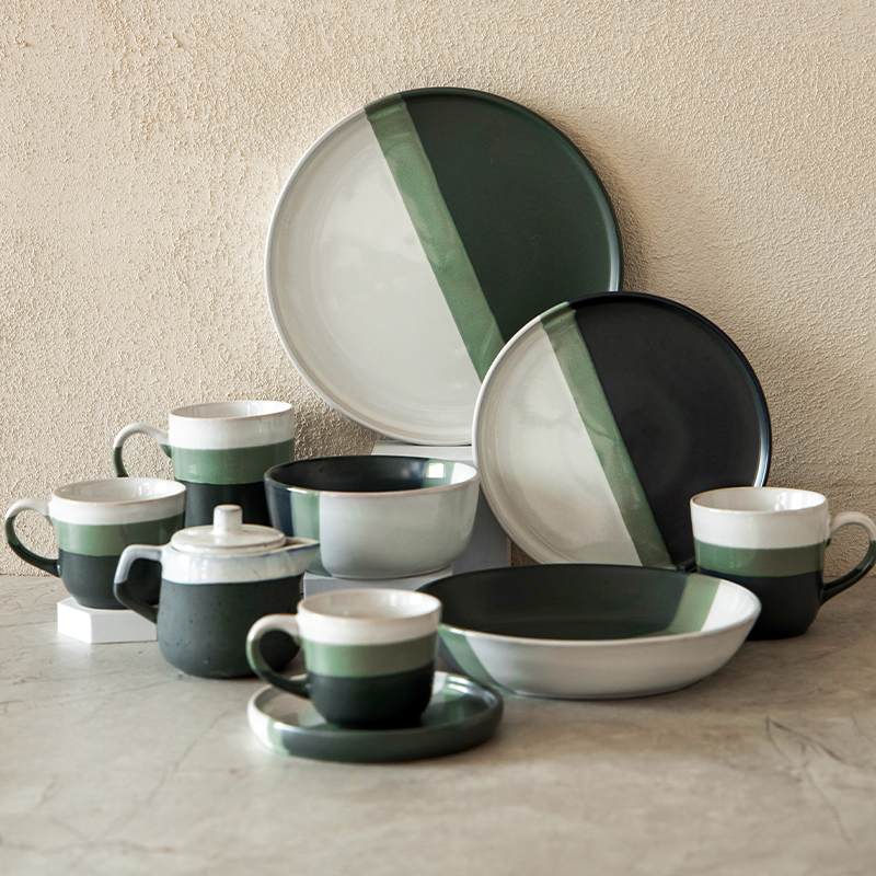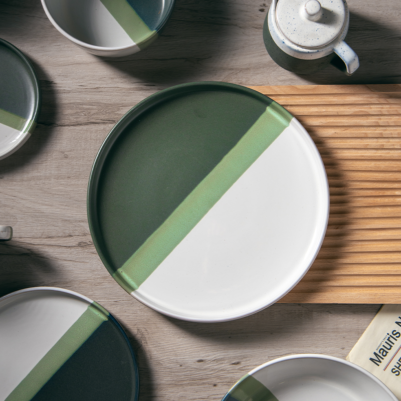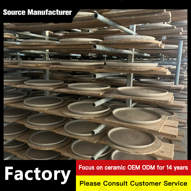 EKA, venta al por mayor, estilo europeo, dos tonos, para servir restaurante de bodas, plato redondo, plato de cerámica, platos de gres para servir