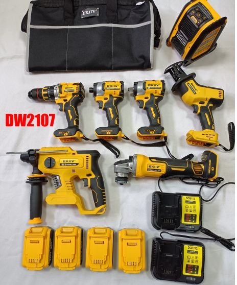Taladro de impacto inalámbrico de 13mm, 1 * destornillador de impacto sin escobillas inalámbrico, 1 * Llave de impacto sin escobillas inalámbrica, Amoladora de ángulo de 5*125mm, 1 * inalámbrico sin escobillas 20mm Rotary Hammer, 1 * altavoz inalámbrico sin escobillas, 4 * 4.0Ah baterías, 2 * cargador rápido, 1*18 pulgadas Bolsa, 1 * sierra de sable sin escobillas inalámbricaHerramienta incluye