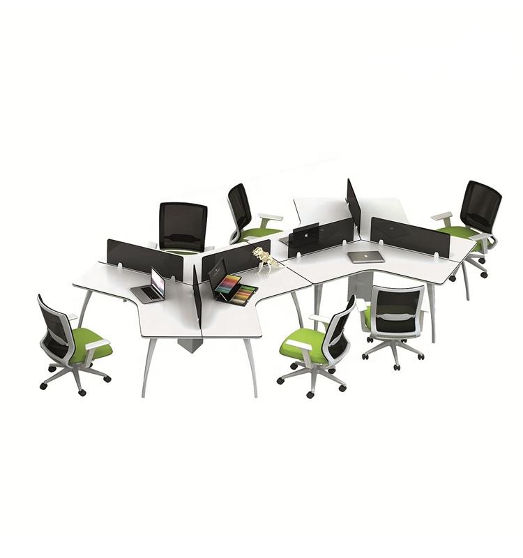 EKL Modular Mesa de oficina Trigle Estación DE TRABAJO Escritorio con superficie MFC Marco de metal para 3 personas Estaciones de trabajo-para dormitorio Uso escolar