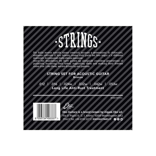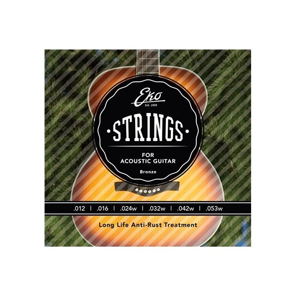 EKO GUITARS-Cuerdas de Guitarra Acústica Bronce 12-53 Set Medium/6 Con Tensión Media Y Un Calibre De. 012-.053