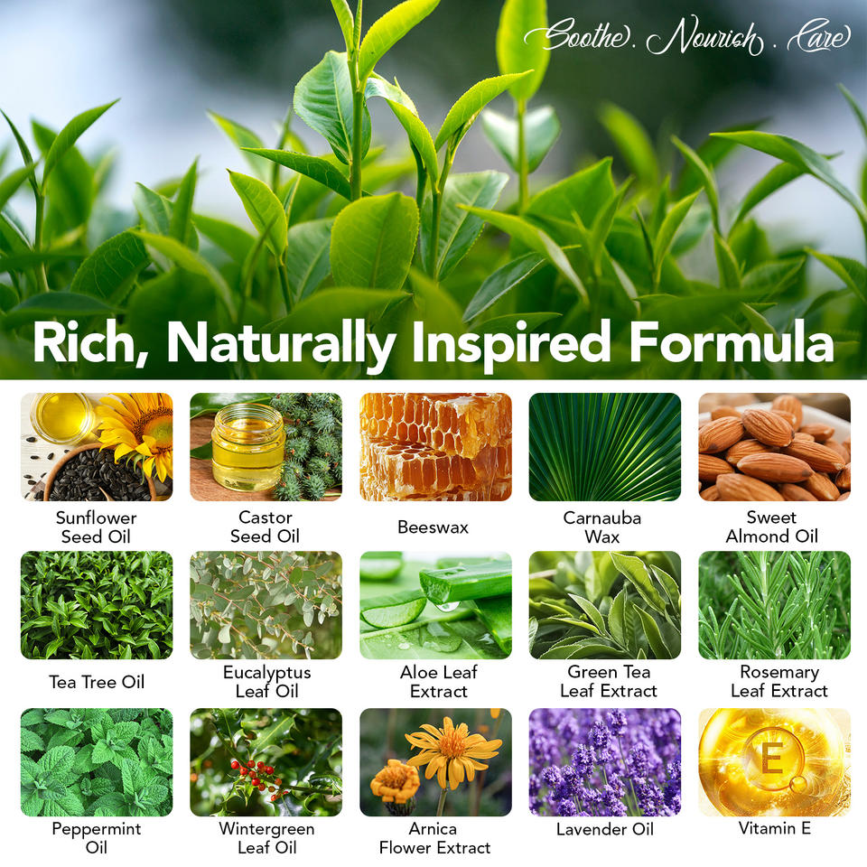 Aceite de Árbol de Té, Aloe vera, Cera de abejas, Vitamina E