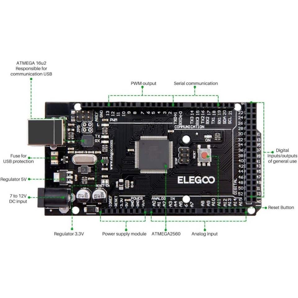 Placa ELEGOO MEGA R3 Cortex A8 con 256KB de Memoria + Cable USB, Kits de Placas de Demostración y Prototipos Compatibles con RoHS