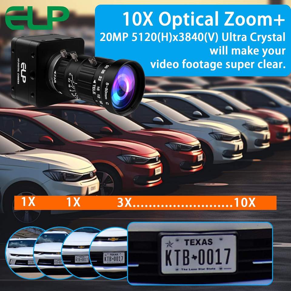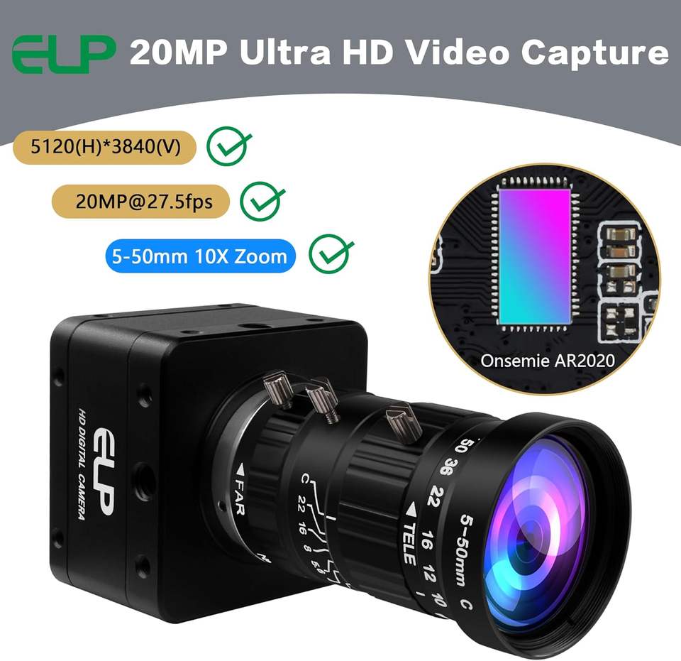 Cámara USB 3.0 ELP de 20MP 4K con Lente de Zoom Manual de 5-50mm 10X, 3840x2160 30fps, Cámara Web de Alta Velocidad para PC, Linux, Mac, Raspberry Pi
