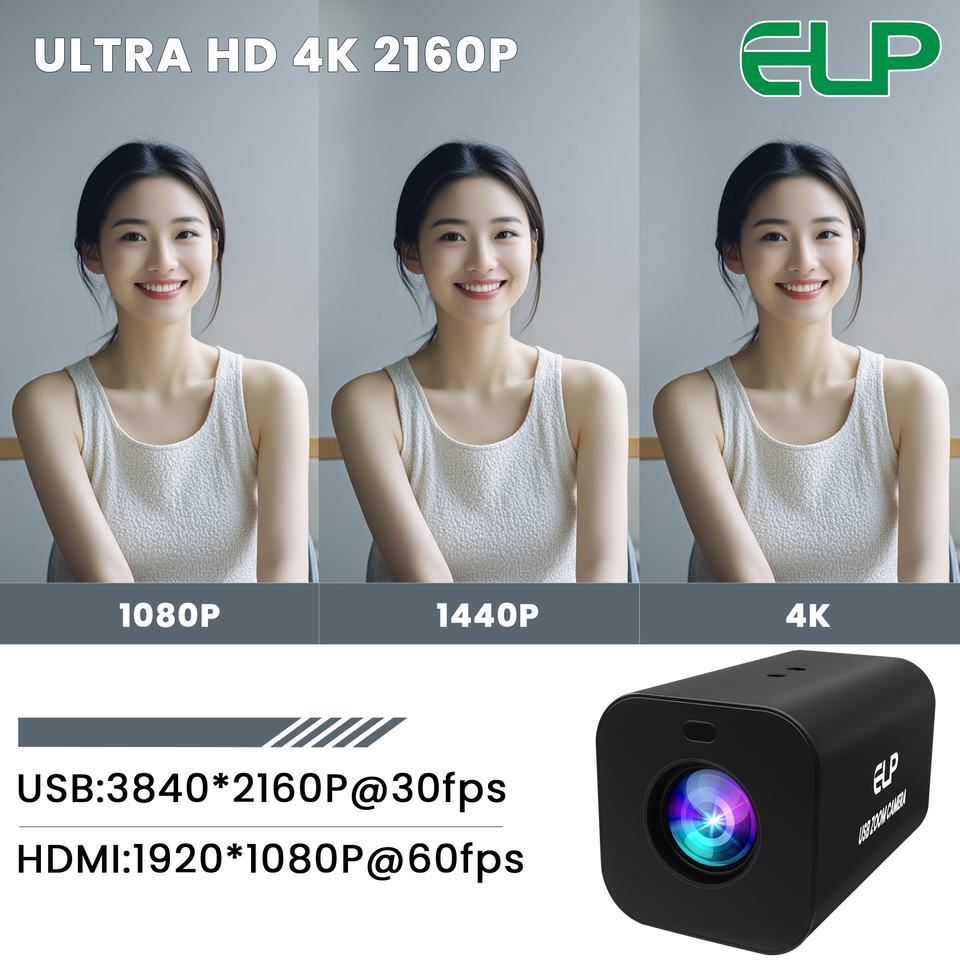 Control remoto ELP 4K Cámara Zoom Enfoque manual Enfoque automático 2160P 30fps 1080P 60fps HDMI USB PC Laptop Webcam para transmisión en vivo