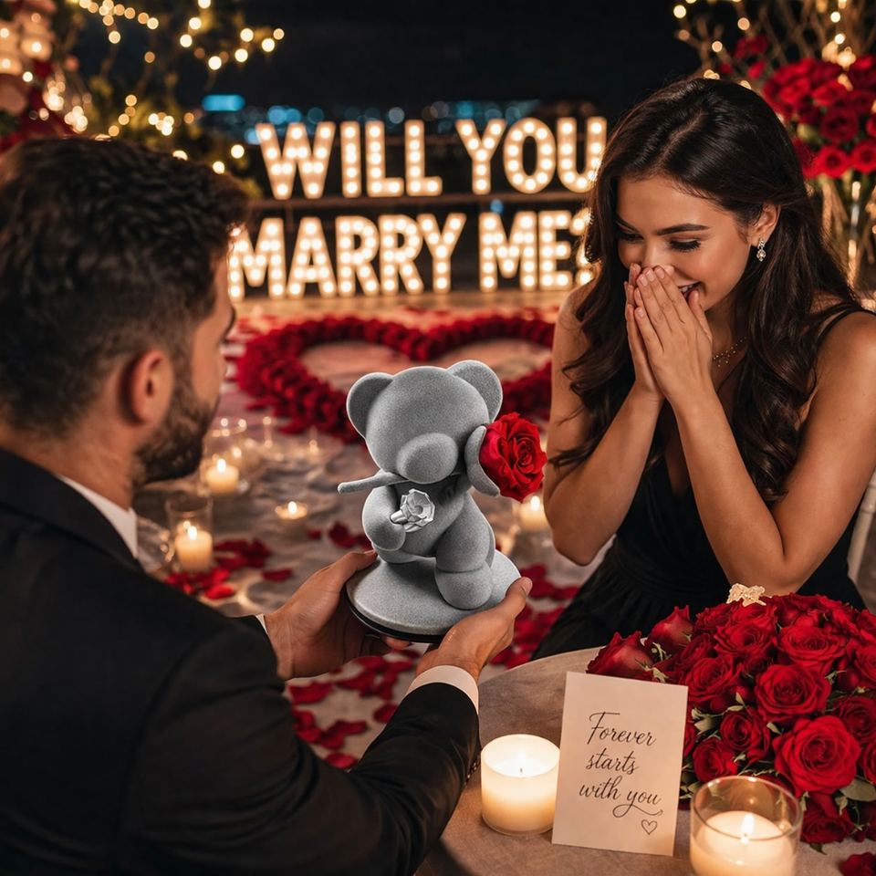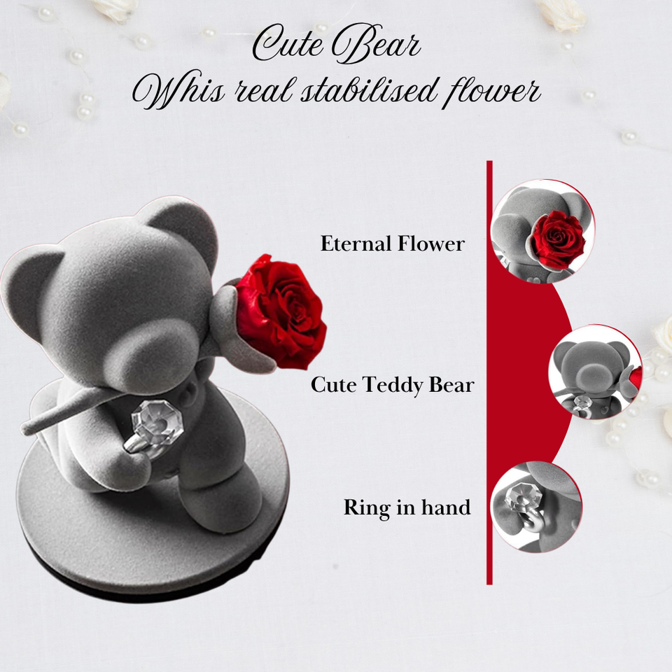 ELVROGEST SA Caja de Regalo con Oso de Peluche y Rosa Roja Preservada, Anillo de Joyería, Regalo Romántico de Lujo para San Valentín para Mujeres, Novias, Esposas