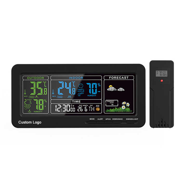 EMAF Termómetro higrómetro interior exterior monitor estación meteorológica digital a color con despertador y 3 sensores inalámbricos para exteriores