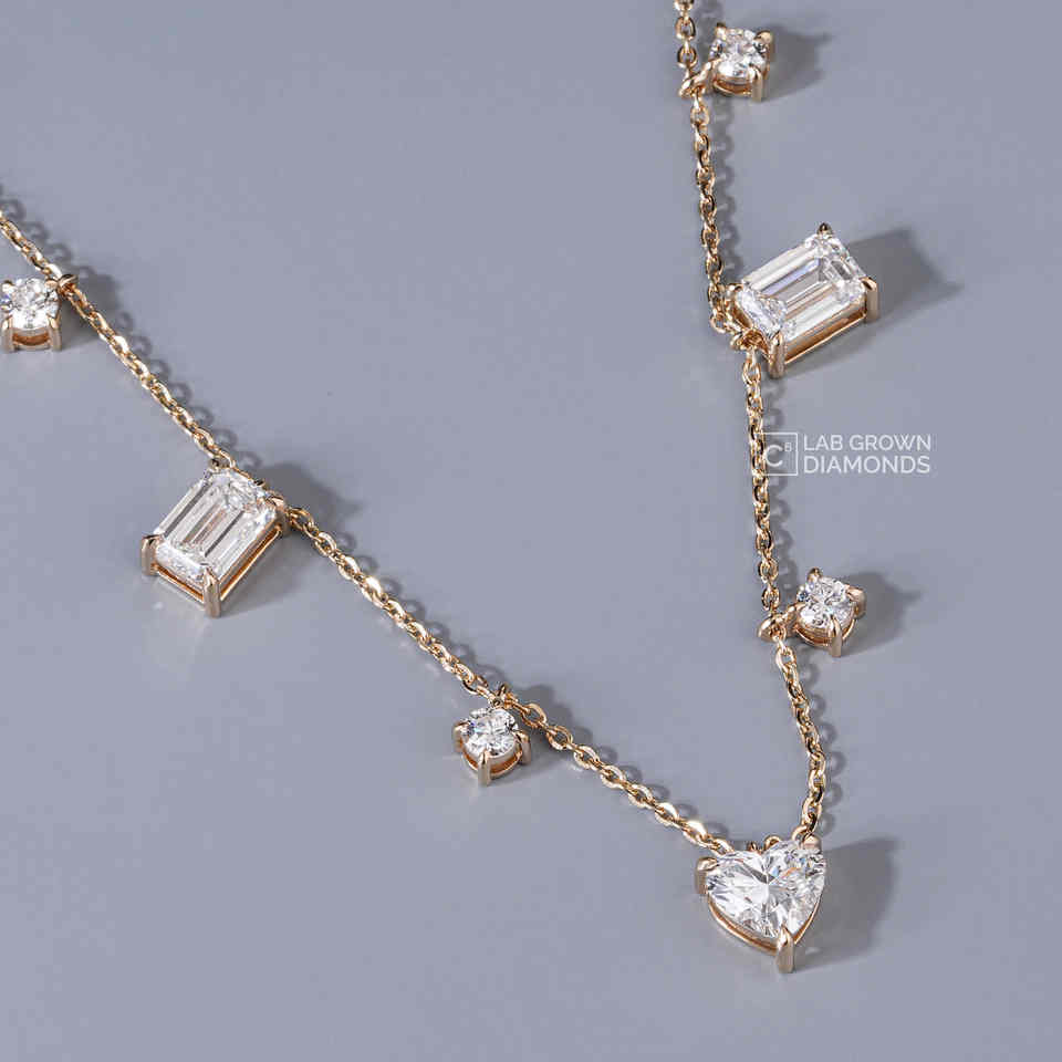 Colgante de Diamante Cultivado en Laboratorio con Corte Esmeralda Ovalado, Redondo y en Forma de Corazón, Plata S925 Chapada en Oro Amarillo, Amuleto de Lujo para Mujer, Claridad EF, Regalo para Ella