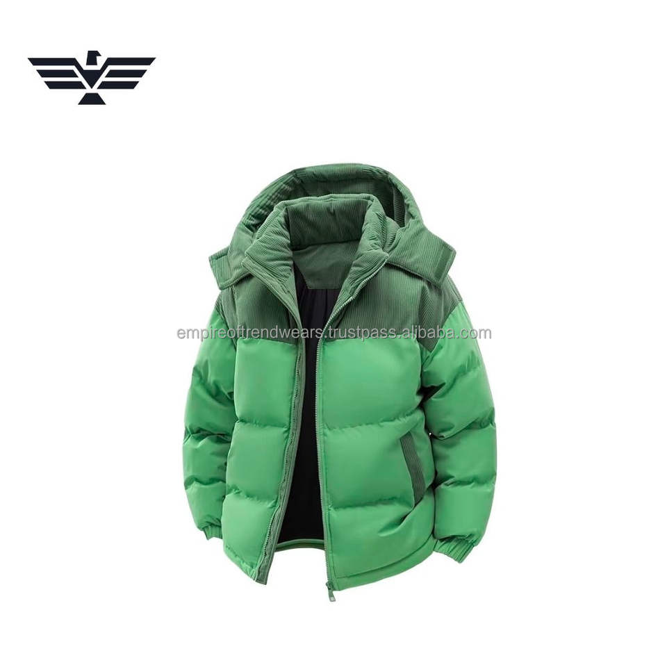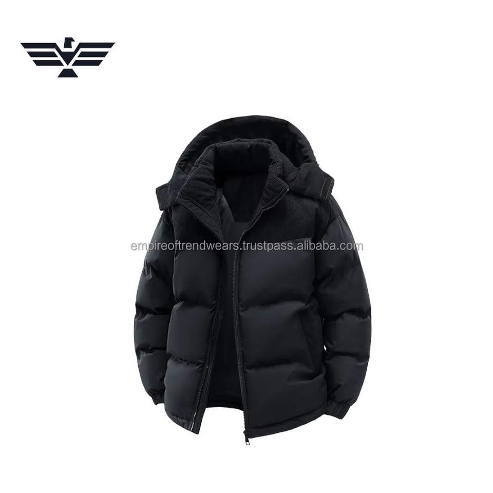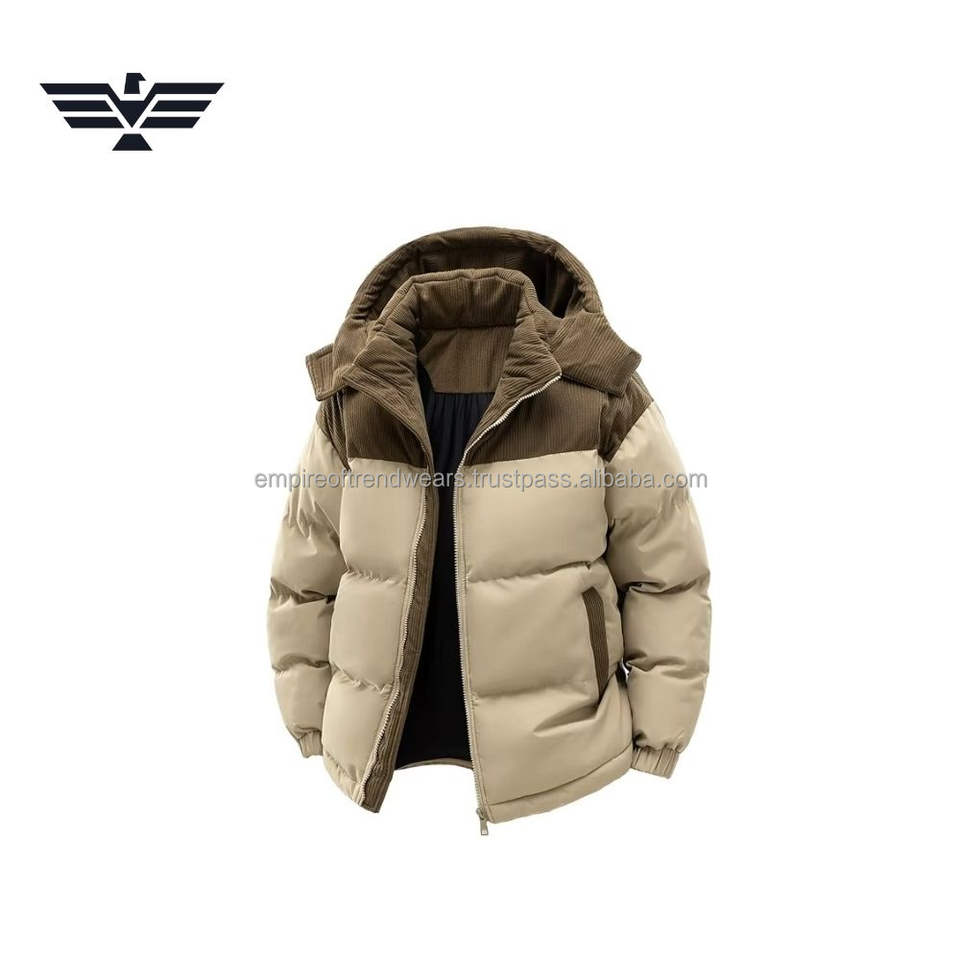 Chaqueta Acolchada de Pana para Hombre EMPIRE TREND WEARS, Chaqueta de Invierno Acolchada con Paneles de Pana, Diseño de Letras, Cuello Alto, Logotipo Frontal