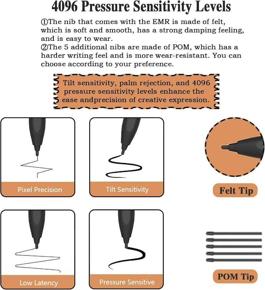 EMR Stylus para Notable 2 Tablet Kindle Scribe 4096 Sensibilidad a la presión 5 Consejos con borrador Metal Palm Rejection Pen