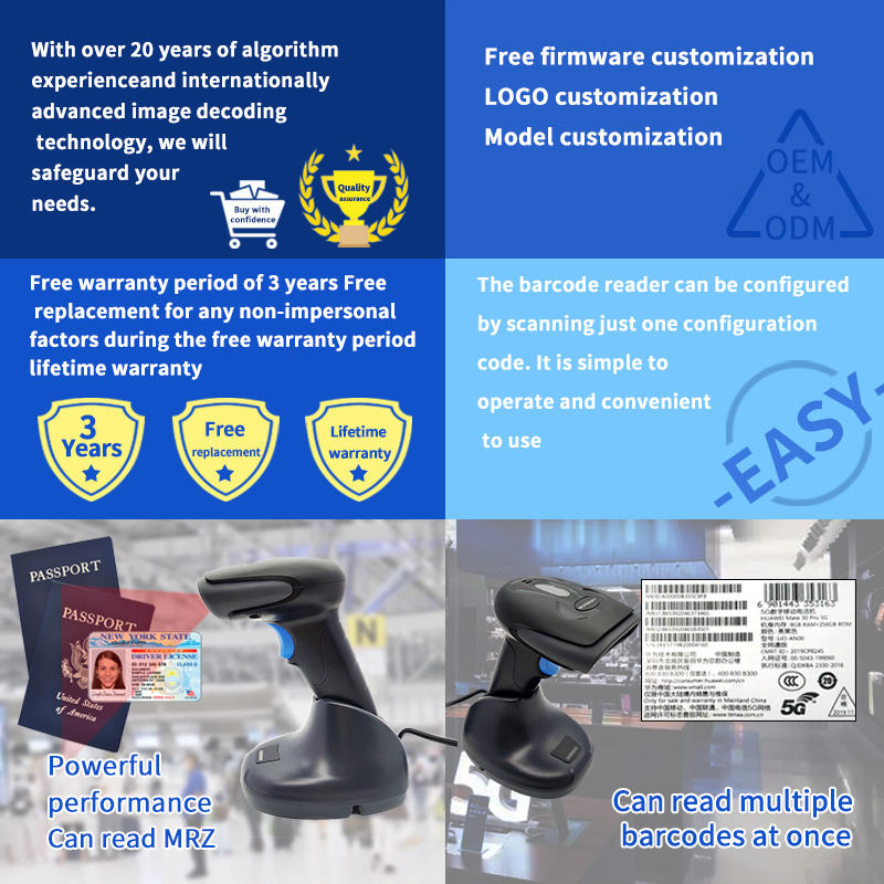 Escáner de código de barras 2D múltiple, escáner de código de barras industrial DPM inalámbrico, lector de código de barras inalámbrico