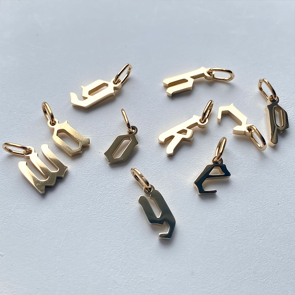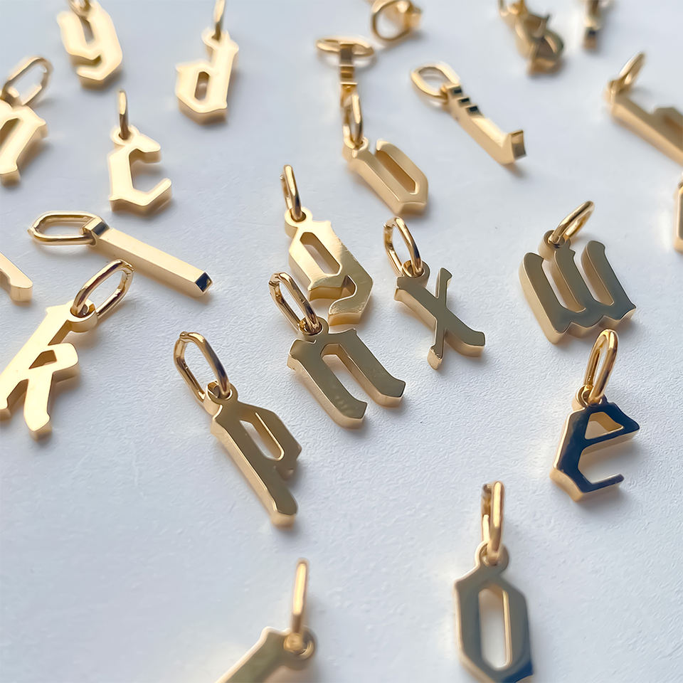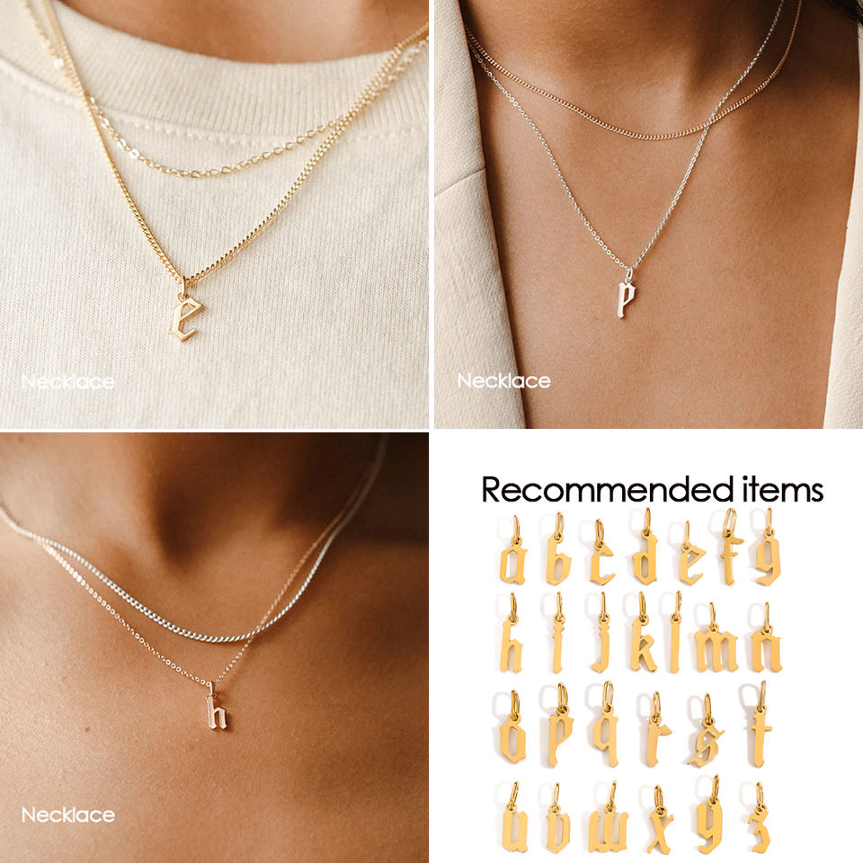 EManco 26 Letras del Alfabeto Gótico de la A a la Z, Joyería de Acero Inoxidable, Colgante con Iniciales Minúsculas para la Creación de Joyas