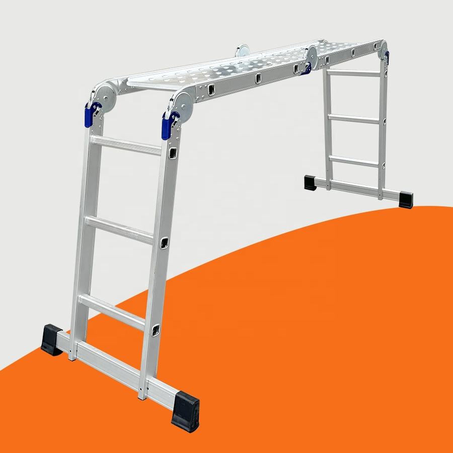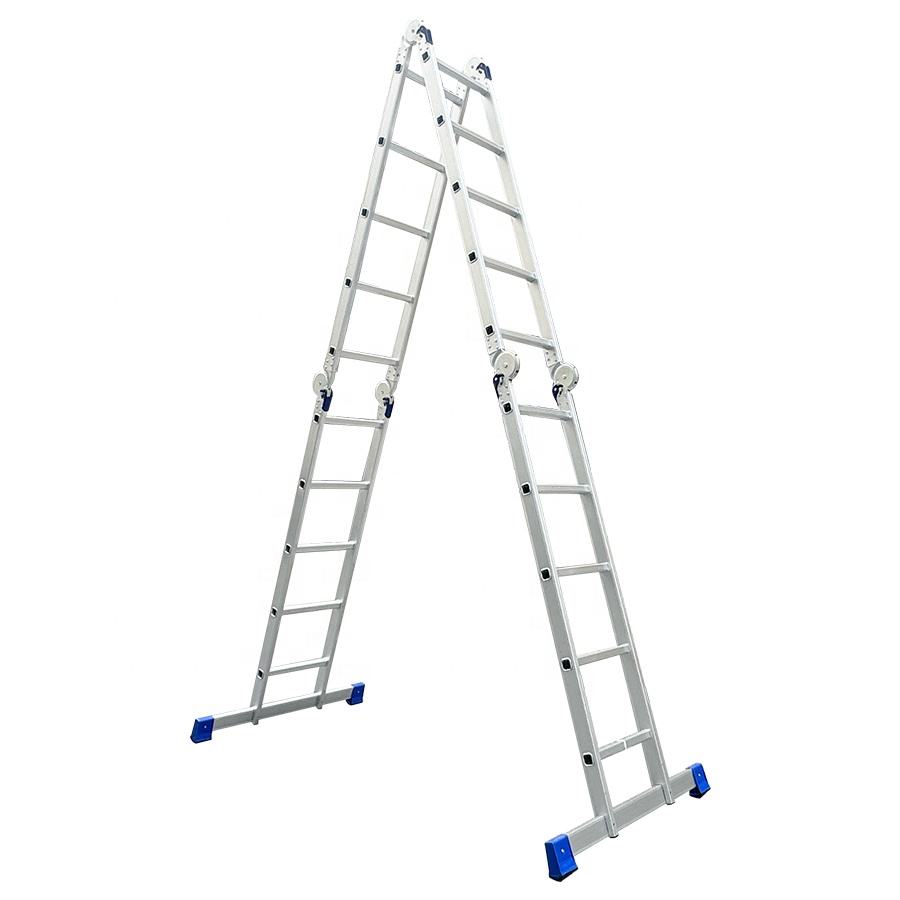EN131 Venta caliente Escalera multiusos Escalera plegable múltiple de gravedad de 4 secciones y 3 peldaños