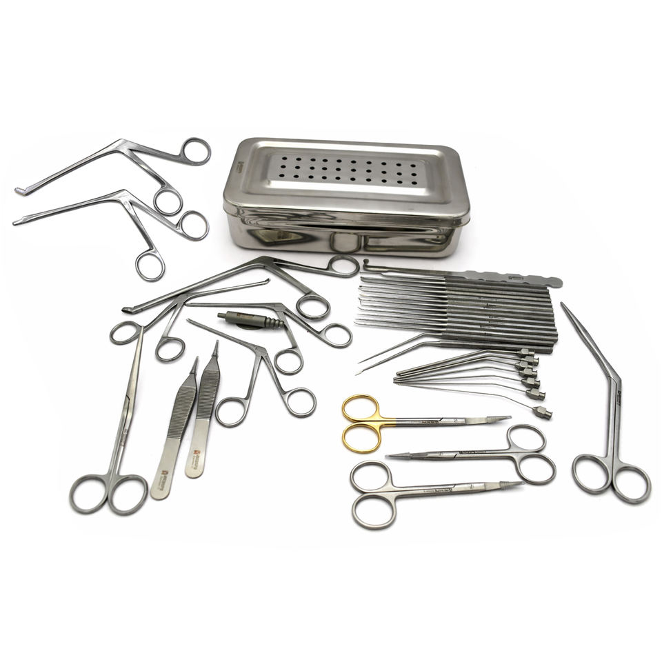 Juego de Instrumentos Quirúrgicos ORL de Acero: Pinzas Manuales para Oídos, Cánula de Succión Auricular, Cortadores Nasales, Tijeras para Septum, Ganchos Retractores