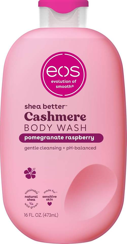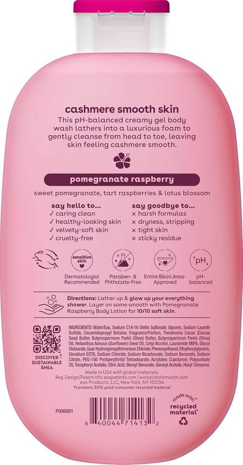 Gel de Baño Humectante Cremoso EOS Pomegranate Raspberry Cashmere 16oz con Manteca de Karité y Vitamina E, pH Balanceado, Vegano, Venta al por Mayor