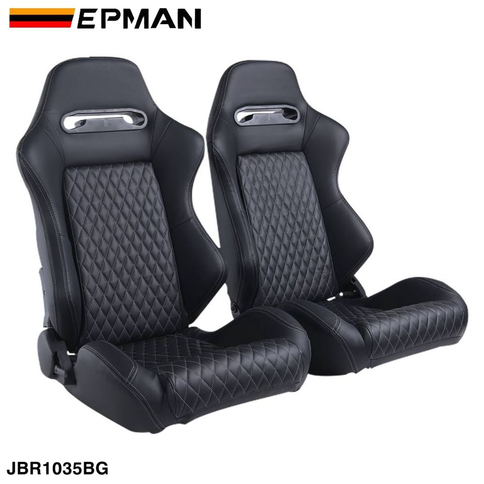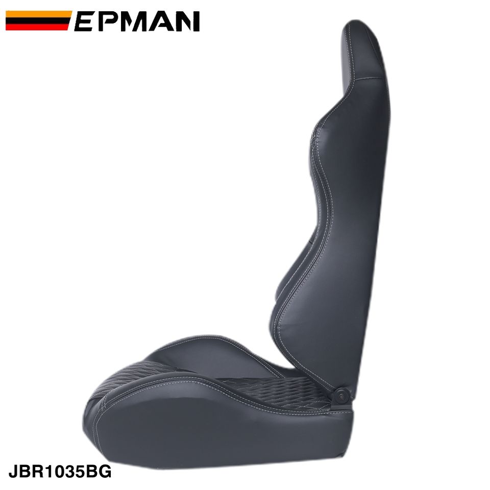 Asientos Deportivos EPMAN Compatibles con la Mayoría de los Asientos de Auto, Reclinables Izquierda/Derecha, Asiento Negro + Costuras Grises, Cuero PVC JBR1035BG