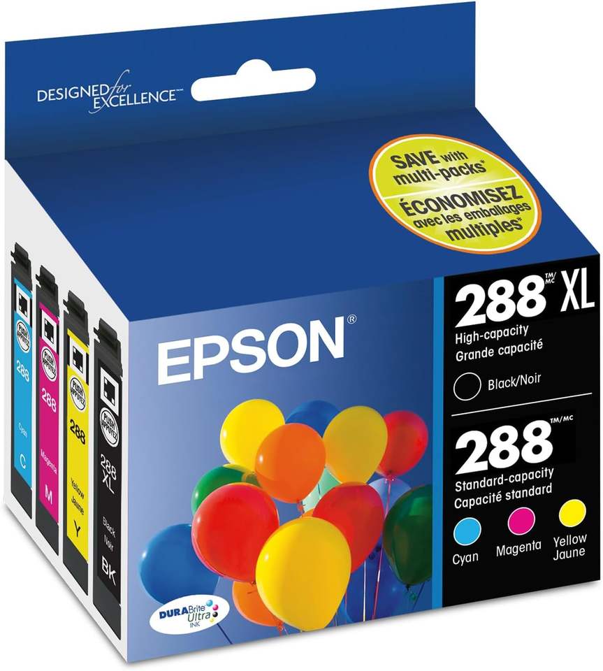 Cartucho de tinta ultra de alta capacidad EPSON 288 DURABrite, color negro y estándar, paquete combinado (2. 2), funciona con Expression