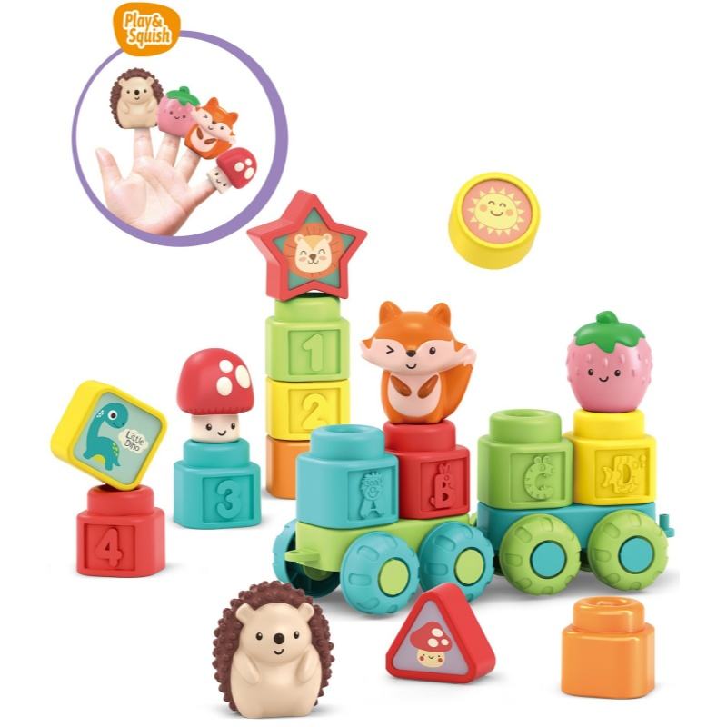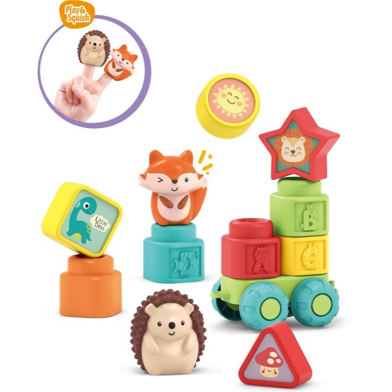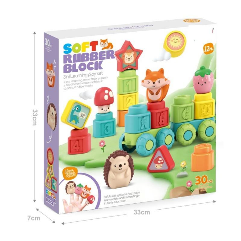 Description:3 in 1 Soft Rubber Blocks Set Animal Finger Puppets Stacking Shapes