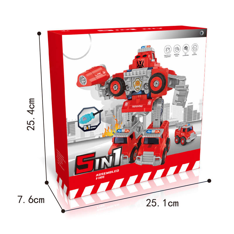 5IN1 DIY rescate camión vehículo transformado robot edificio conjuntoDescripción