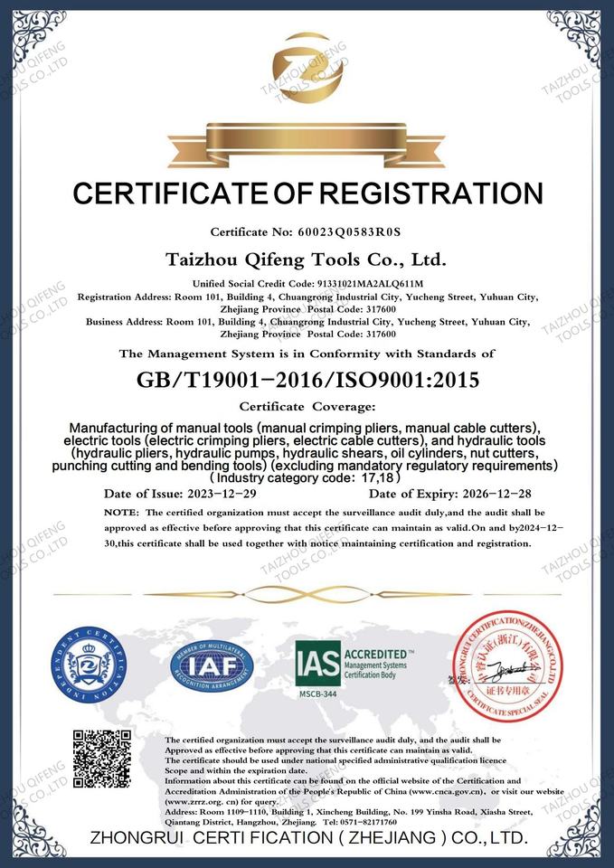 Conjunto de herramientas, Destornillador, Alicates de la combinación, Mango Spinner, Alicates de nariz larga, Cuchillo de utilidad, Antorcha, Cinta eléctrica, Cinta métrica, Stripper, Llave ajustable, Pinzas, E lectric Htdraulic herramienta que prensaHerramienta incluye