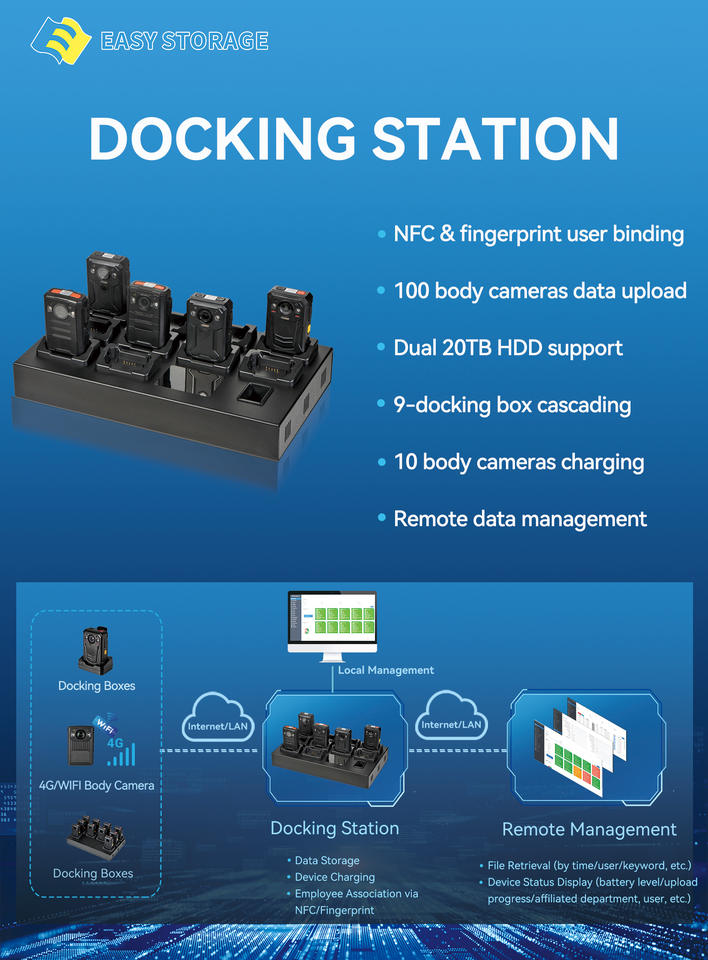 Servidor de Almacenamiento ES SDSN-B07-FR para 2 Discos Duros SATA de 3.5\", Admite Carga y Subida Simultánea de 10 Cámaras Corporales, NFC