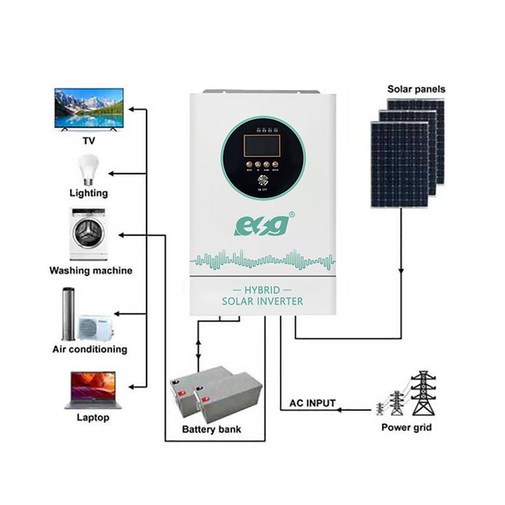 Inversor Híbrido Solar ESG de 3.5KW, 5.5KW, 8KW, 10KW, 110V, 120V, 220V, 240V, Bifásico, Fuera de Red, con Sistema Solar MPPT