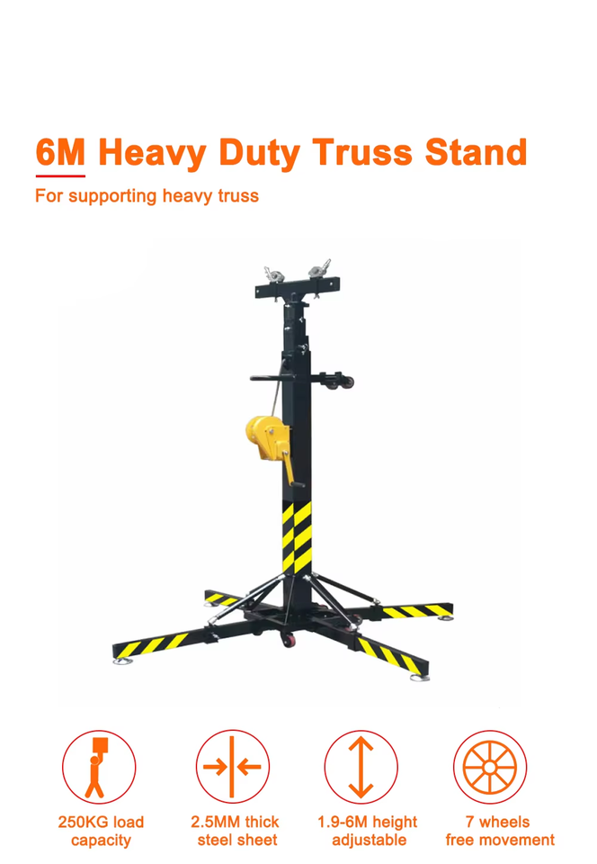 Trípode Móvil Telescópico ESI de 0.6-1m de Altura, Soporte Cuadrado para Iluminación y Sonido en Eventos, Manivela, Certificación TUV, Aluminio Portátil