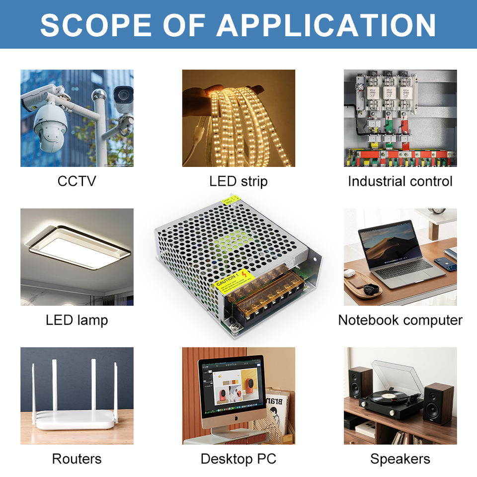 Uso:CCTV, Industria, Laboratorio, Hogar Inteligente, Iluminación LED, Impresora 3D, Equipo industrial, Máquinas, Carga de la batería, fuente de alimentación industrial para riel DIN