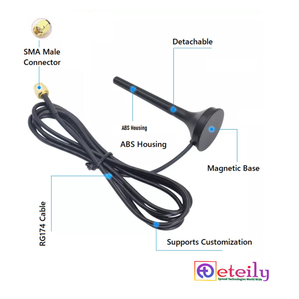 Antena Magnética de Goma ETEILY Wi-Fi 3dBi para Conector Macho, Protección IP65, Cable RG174 (L-3Mtr) para una Comunicación Eficaz