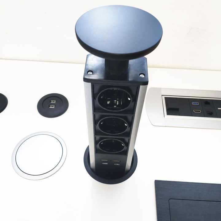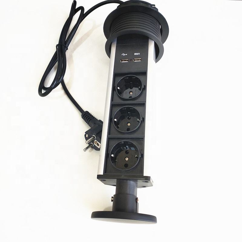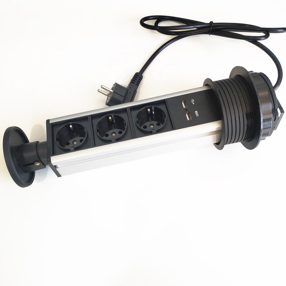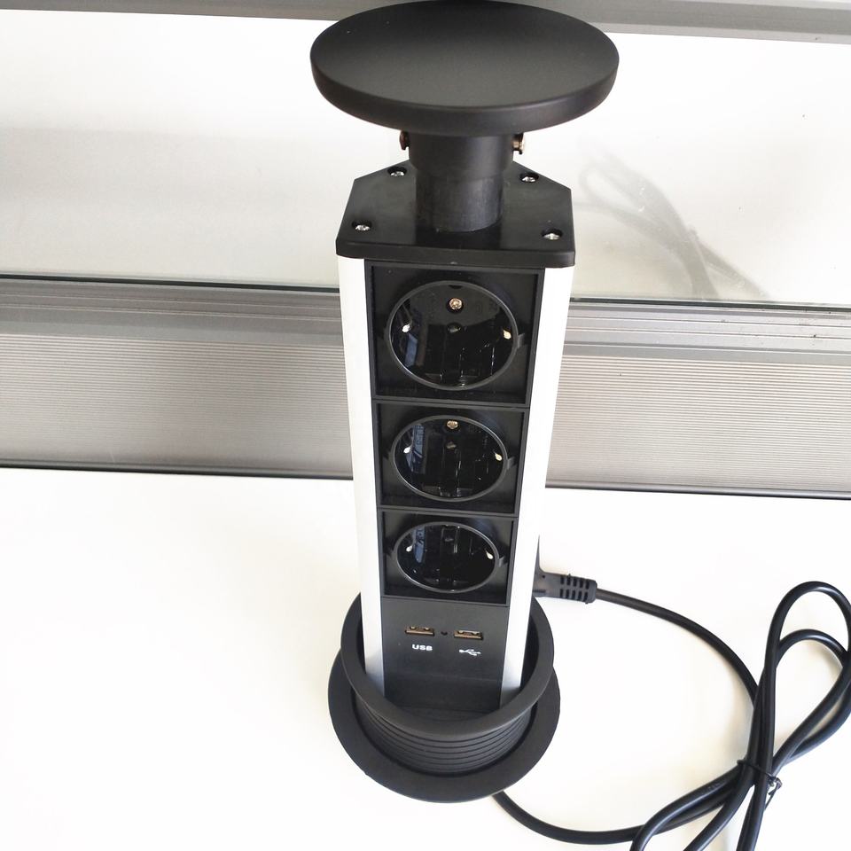 Enchufe de Torre Retráctil Oculto para Escritorio/Cocina con 3 Tomas de Corriente de 10A, 2 Puertos USB y Enchufe Universal