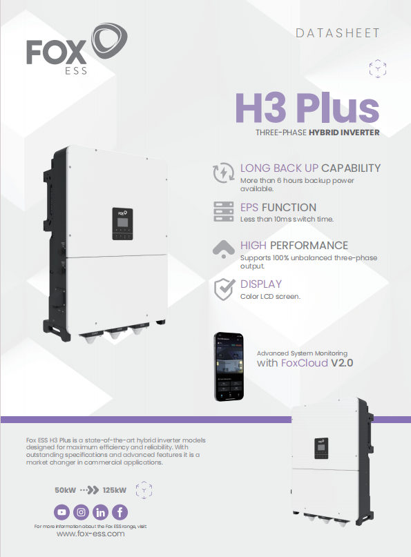 Inversores Híbridos Fox Ess para el Mercado Europeo, Trifásicos, 380v 400v, 50kW 60kW 75kw 80kW 100kW 125kW, Almacenamiento Solar, Uso Comercial y Empresarial