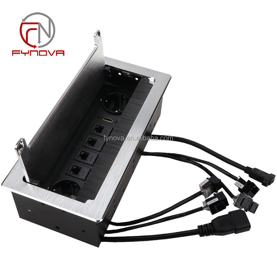 Enchufe de Corriente Multifuncional Estándar Europeo con 2 Tomas de Corriente CA y 4 Puertos RJ45 para Muebles de Mesa, Enchufe de Escritorio Empotrado